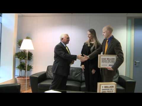 Avaaz and Greenpeace deliver the first European Citizens' Initiative to EU Commissioner for Health and Consumer Policy John Dalli signed by over 1 million European citizens. The initiative calls on the Commission to ban genetically modified (GM) crops until a new independent, ethical, scientific body is established to assess their impact. The 1 million signatures were included in a 380-square-meter piece of 3D pavement art placed in front of the European Commission building.